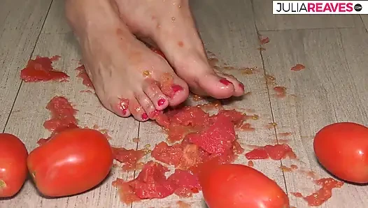 Dia membuat jus tomat telanjang dan terangsang saat melakukannya